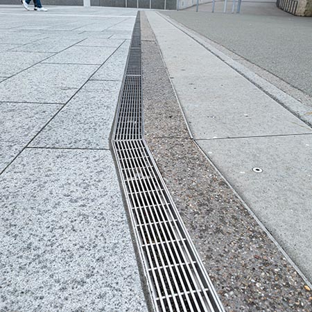 The system meets the requirements of BS EN 1433 and is engineered for efficient flow management and long-term reliability. The availability of faceted and curved channel systems further enhances design flexibility for specifiers seeking bespoke architectural solutions.