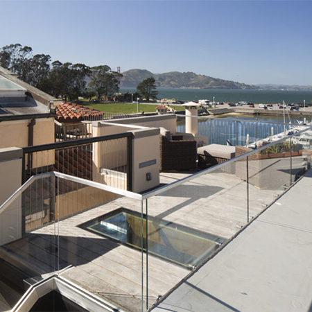 Glazing Vision Flushglaze walk-on rooflights have been installed on the 1200 square foot roof terrace a luxury property directly across from the St Francis Yacht Club on Marina Boulevard.
