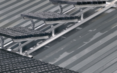 Kee® Walk is supplied in standard modules, which can be supplied ex-stock for rapid installation on virtually any rooftop project. The modules are supplied as 1.5 and 3m pre-assembled sections to suit the requirements of different roofs. These lightweight modules are constructed from glass reinforced nylon treads attached to aluminium support beams that are fixed to the roof surface. Steps and a traverse option, complete with an adjustable hinge, enable a Kee® Walk installation to be adapted to roof configurations from 0 through to 35 degrees. The installer can easily set the angle of the steps, by removing the locating bolt in the hinge, adjusting the angle and replacing the bolt at the desired point on the hinge. No bespoke parts are required.
