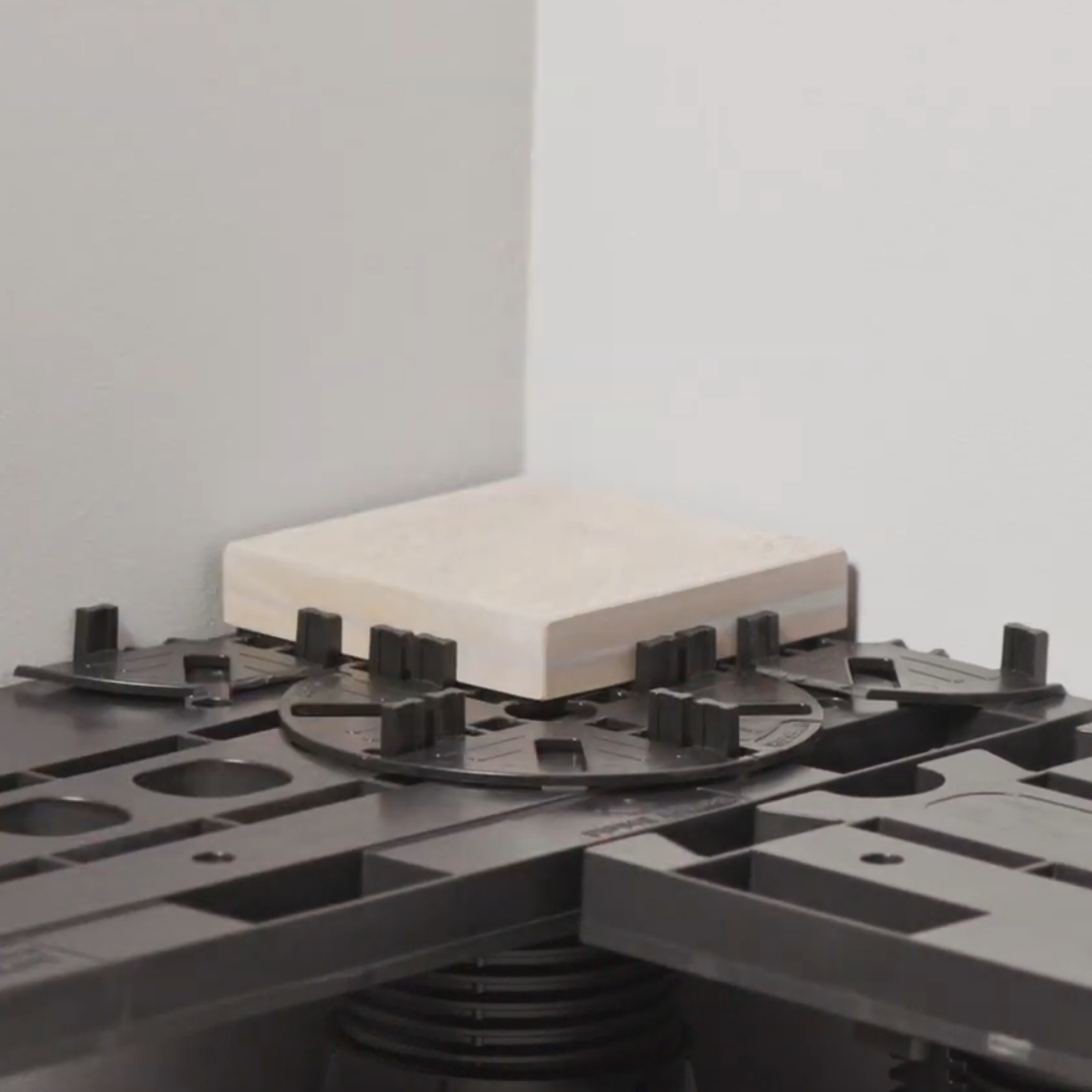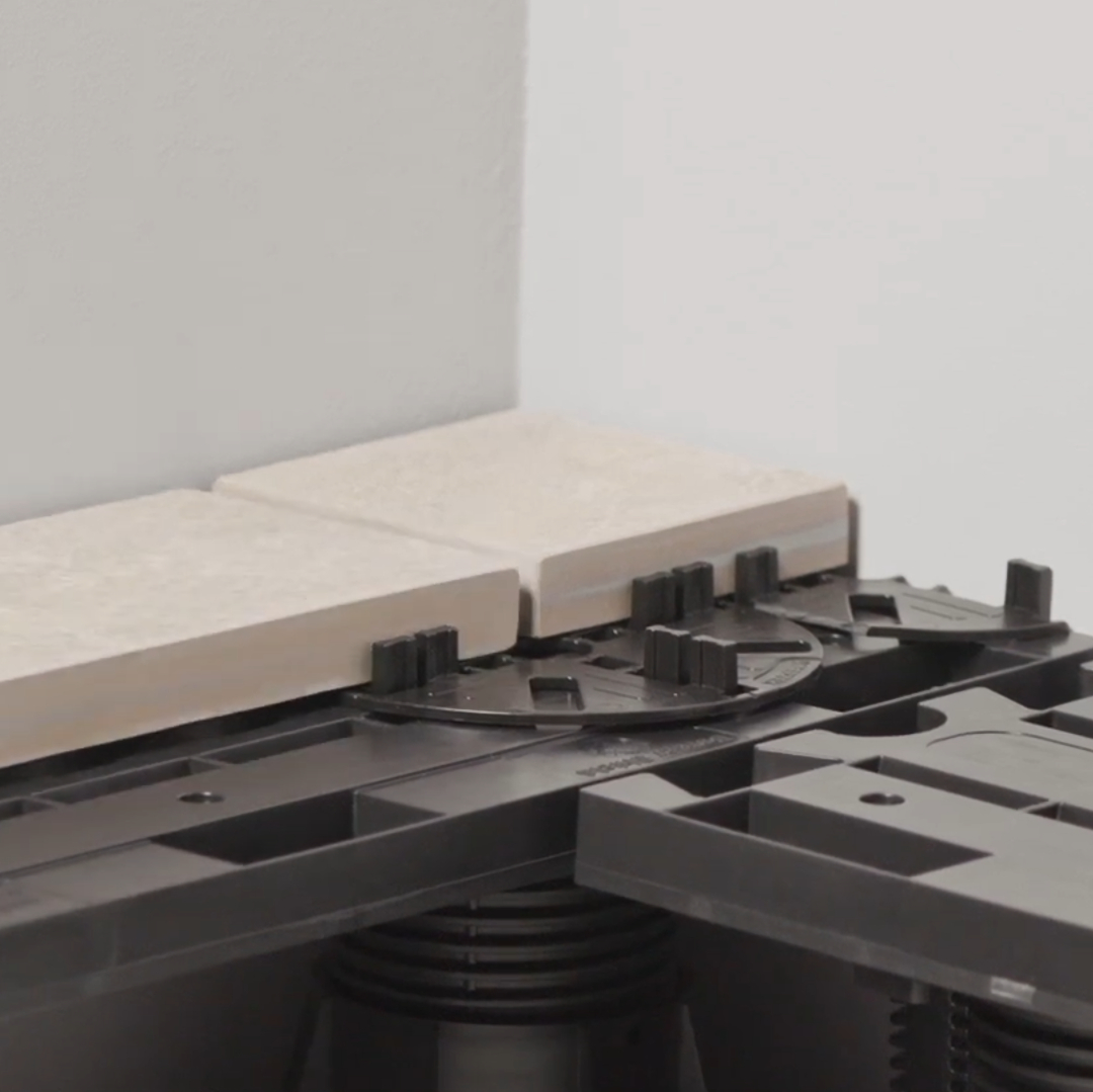 Border Shield has been developed to address a common weak point in raised floor systems, particularly along terrace edges, balconies, podium decks and pool surrounds, where cut or perimeter tiles are more vulnerable to movement. The system provides a controlled and secure edge detail, helping designers and contractors achieve a safer and more stable finish without compromising access or adjustability.