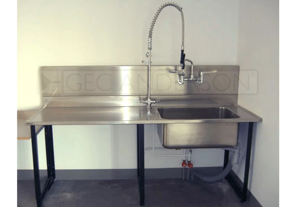 Installed by Specialist Joinery Fittings, the bespoke worktops from GEC Anderson are made from acid-resisting grade satin finish stainless steel. The worktops, up to 4m in length, feature integral sinks from GEC Anderson’s standard range as well as splashbacks and water-retaining edge details to minimise spills and splashes during daily use.