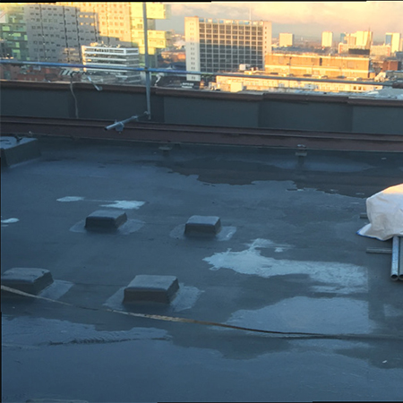 The 525m2 of roof area only had one functioning outlet. As the offices below were tenanted there was limited possibility to install additional outlets, so ponding water was a real issue. Operatives had to clear the roof area daily after overnight rain, sometimes taking up until 1.30pm.