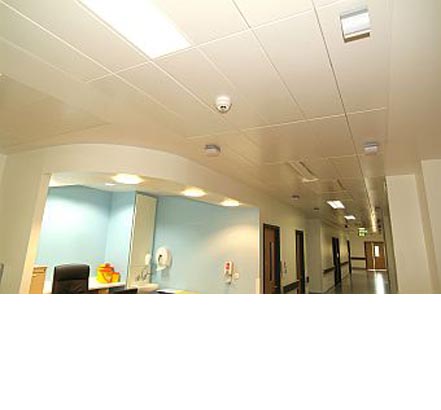 HKR Architects had the design brief of this state of the art medical centre. Burgess Architectural Products was able to supply a solution whereby the metal ceiling tiles were supplied finished in a patented silver based anti-microbial coating. Burgess is the only ceiling-tile manufacturer licensed to use this radical anti-bacterial coating.