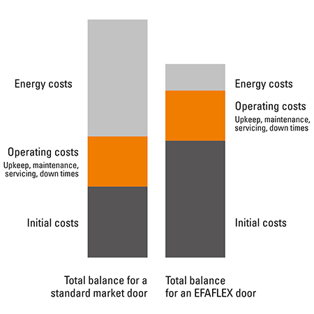 Turrell concluded, ‘We encourage people to do the maths and look at their high-speed door as an investment which makes long term economic and environmental sense. By that we mean, factor in the initial cost of the high-speed door. For sure it will initially be more expensive than a traditional sectional overhead door or roller shutter, but then add in the operating costs (servicing, upkeep, maintenance, and downtime) and energy bills, and on total balance, the EFAFLEX high-speed door will be more cost effective and sustainable, for many years to come, of that we are confident!’