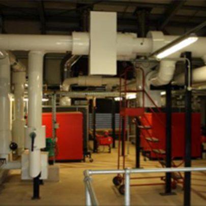 An appraisal was undertaken to evaluate the technical and economic viability of constructing a new energy centre comprising of a single wood chip boiler system to act as the lead boiler with natural gas boilers providing standby and peaking capacity. New pre-insulated heat main was installed to connect into the existing heat main system. The design settled on a single 1.2MW Binder wood chip boiler with 2 gas boilers each rated at 2400kW of capacity.