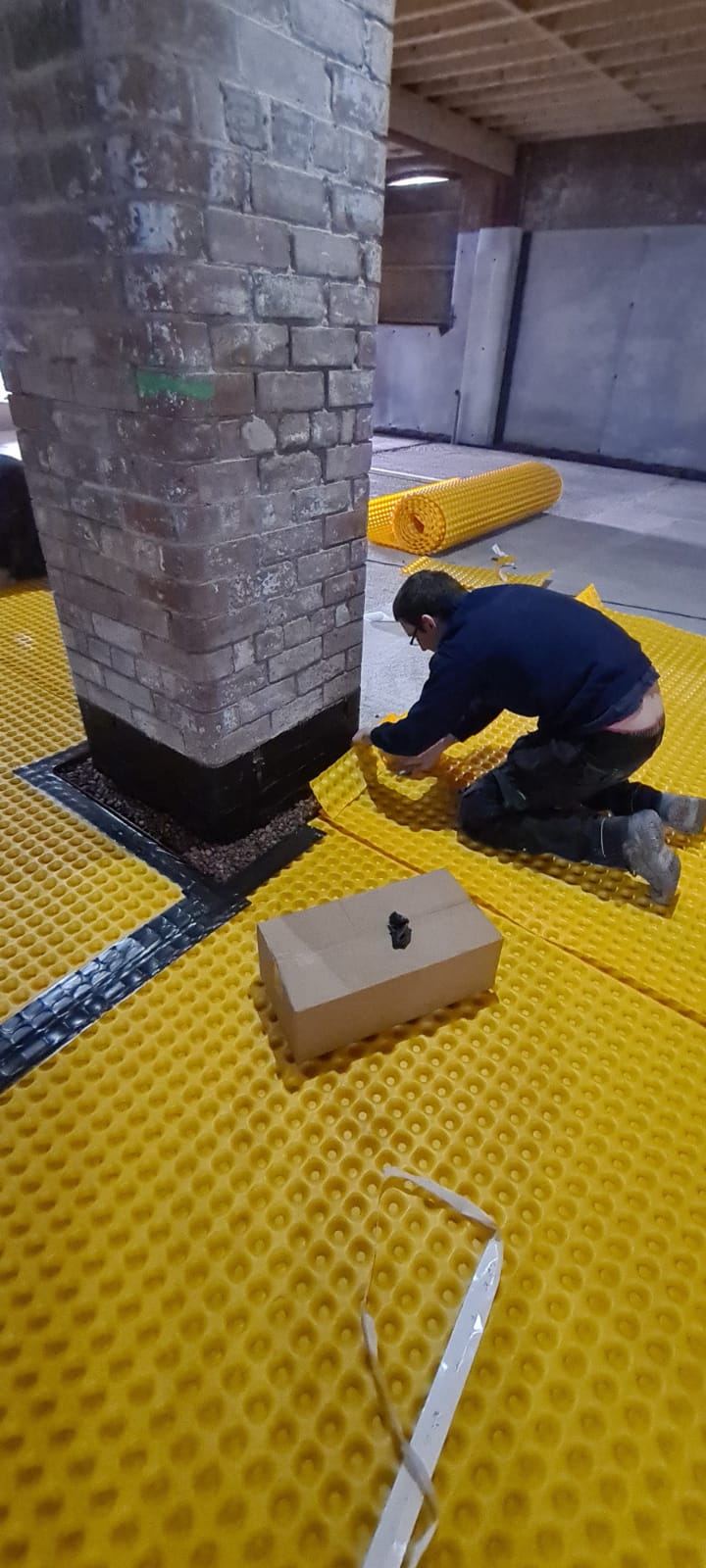 Using Type C Cavity Drain Membranes, the team at Wykamol were able to use their years of experience to design the pumped drainage that this basement space needed. As the sub floor levels were under existing drains and as such all drainage would need to be pumped to a higher level.